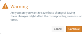 Note: Creating the cross-source link automatically disables any same-source published links for the cross-source linked field. This prevents you from accidentally having duplicate filters. You can, however, re-enable the same-source link later. See Control How Cross-Visual Filters Interact in a Dashboard. Select Continue. The cross-source link has been created. The non-table visuals in the dashboard that use the sources that are linked and that are grouped by their cross-source linked fields show a