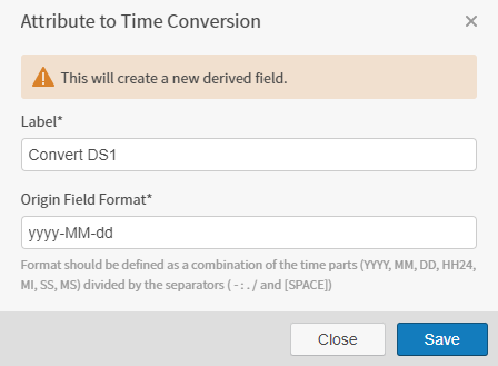 Convert an attribute field to a time field as a derived field in your data source configuration