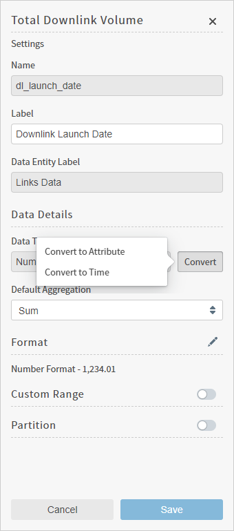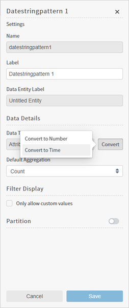 Note: The process described here is not the recommended process. Instead, Composer recommends that you convert the data using a derived field, as described in Convert Attributes to Time Fields Using Derived Fields.