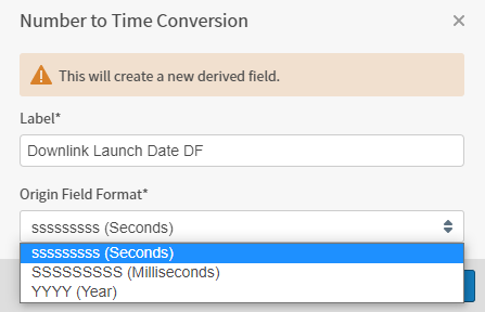 Rename the field in the Label field, and select an available time granularity in the Origin Field Format.