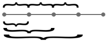 The retrieval of a rolling time window starts at the point where the last retrieval finished. The retrieval of a pinned time window always starts at the same point, which is provided by the from element. The image below shows rolling time windows above the timeline, and pinned windows beneath it. |