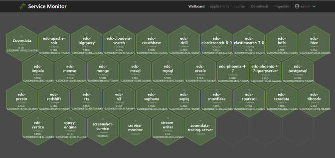 The Wallboard view provides shows all the Composer microservice types used in your installation. You can access it by selecting the Wallboard menu option.